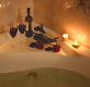 Im Preis enthalten sind eine Flasche Wein, Kerzen, Blumen und Pralinen.